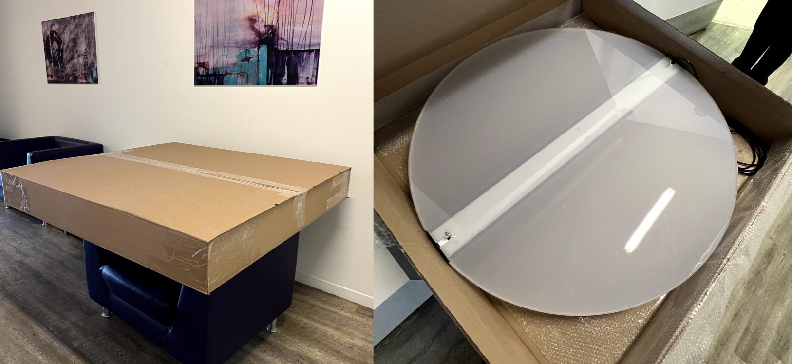 The design allows the fixture to be assembled and packaged in a low-profile box that can be comfortably carried through doors by two persons. Installation follows a plug & play method that is fast and requires simple steps.
