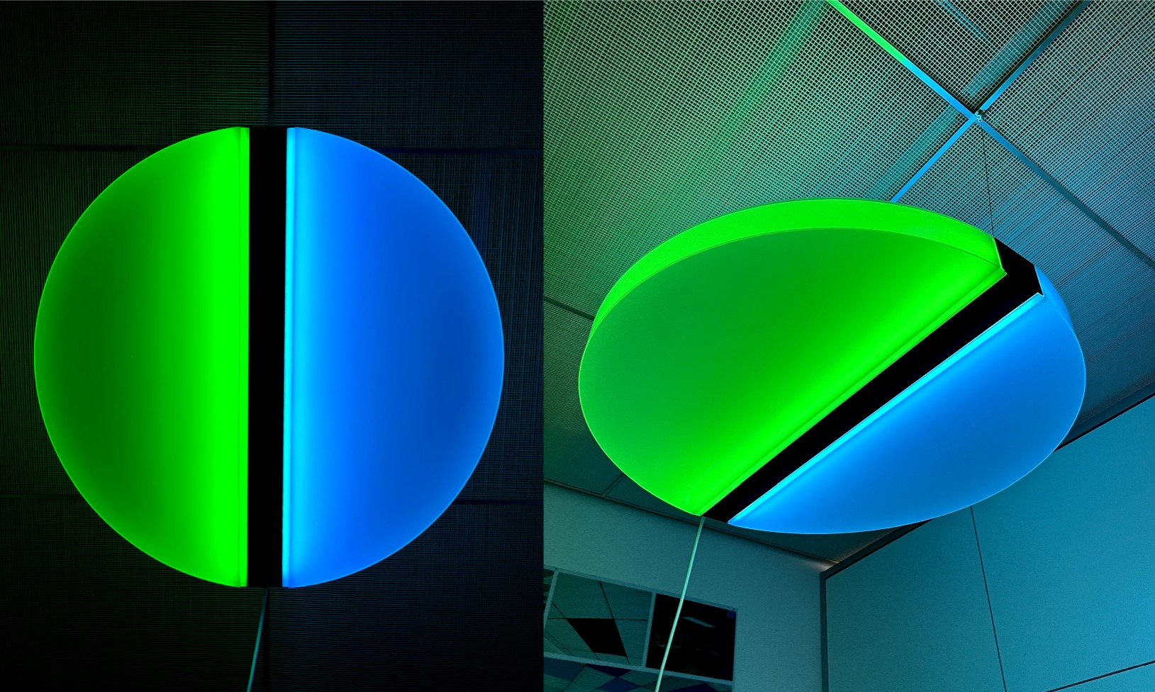 Primitive shapes, colour gradients, and lighting effects from lunar eclipses inspired the design of the Origin fixture.